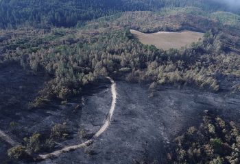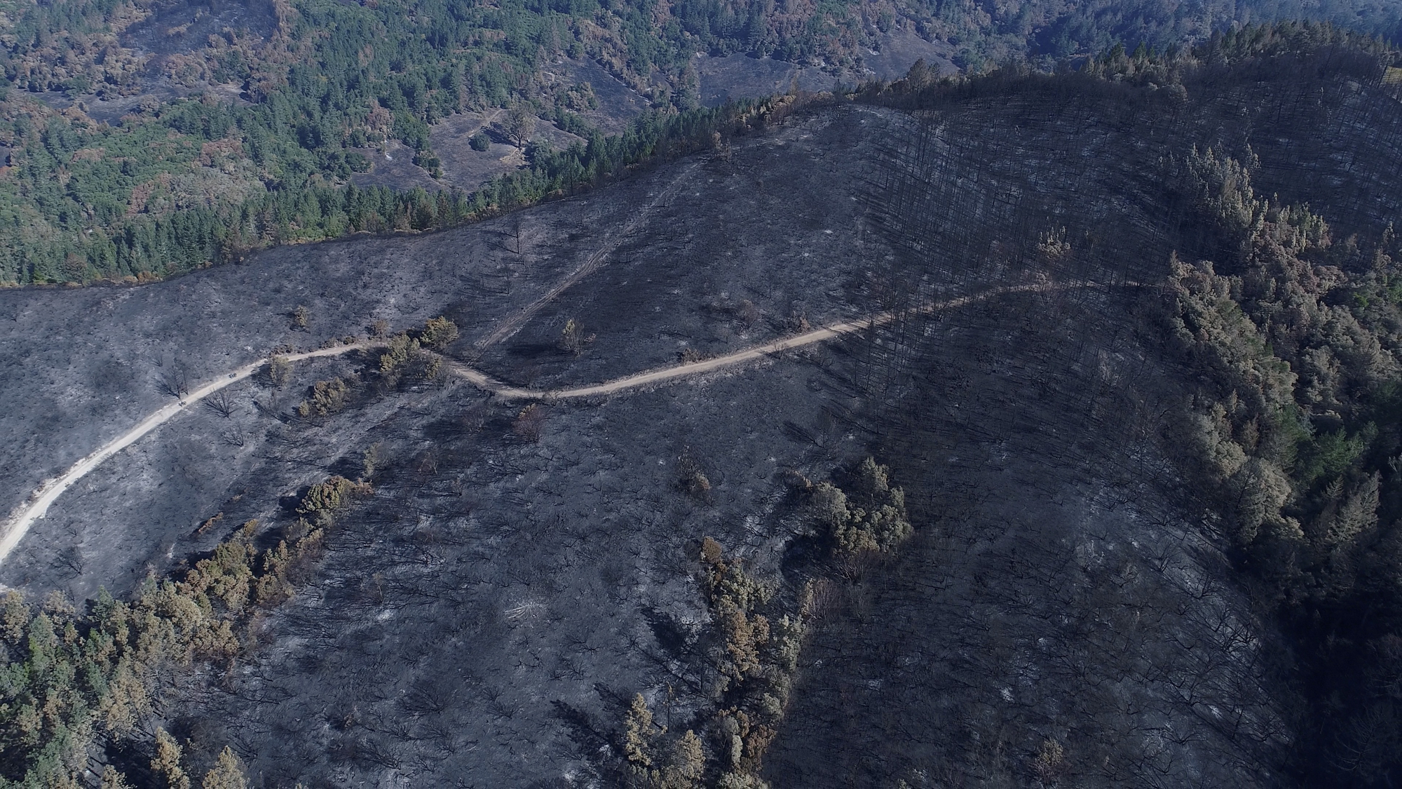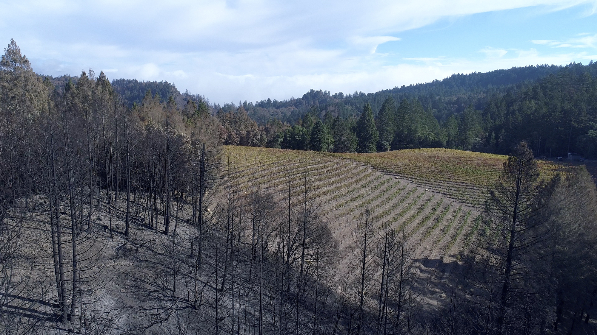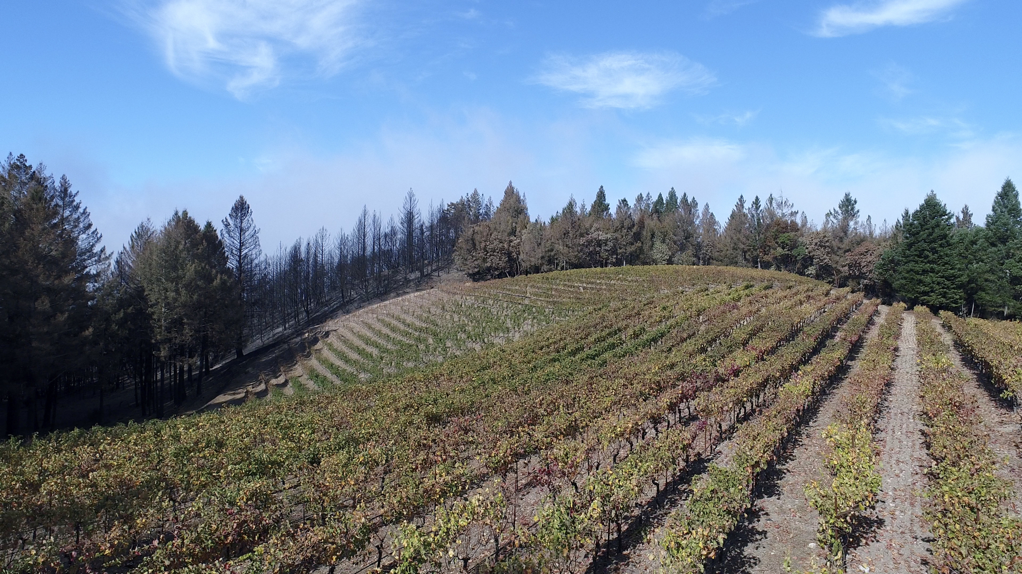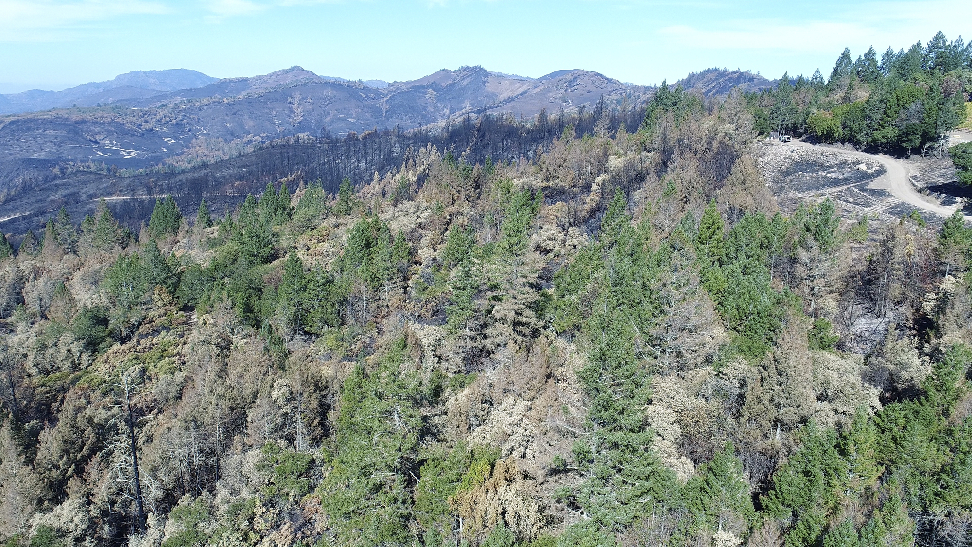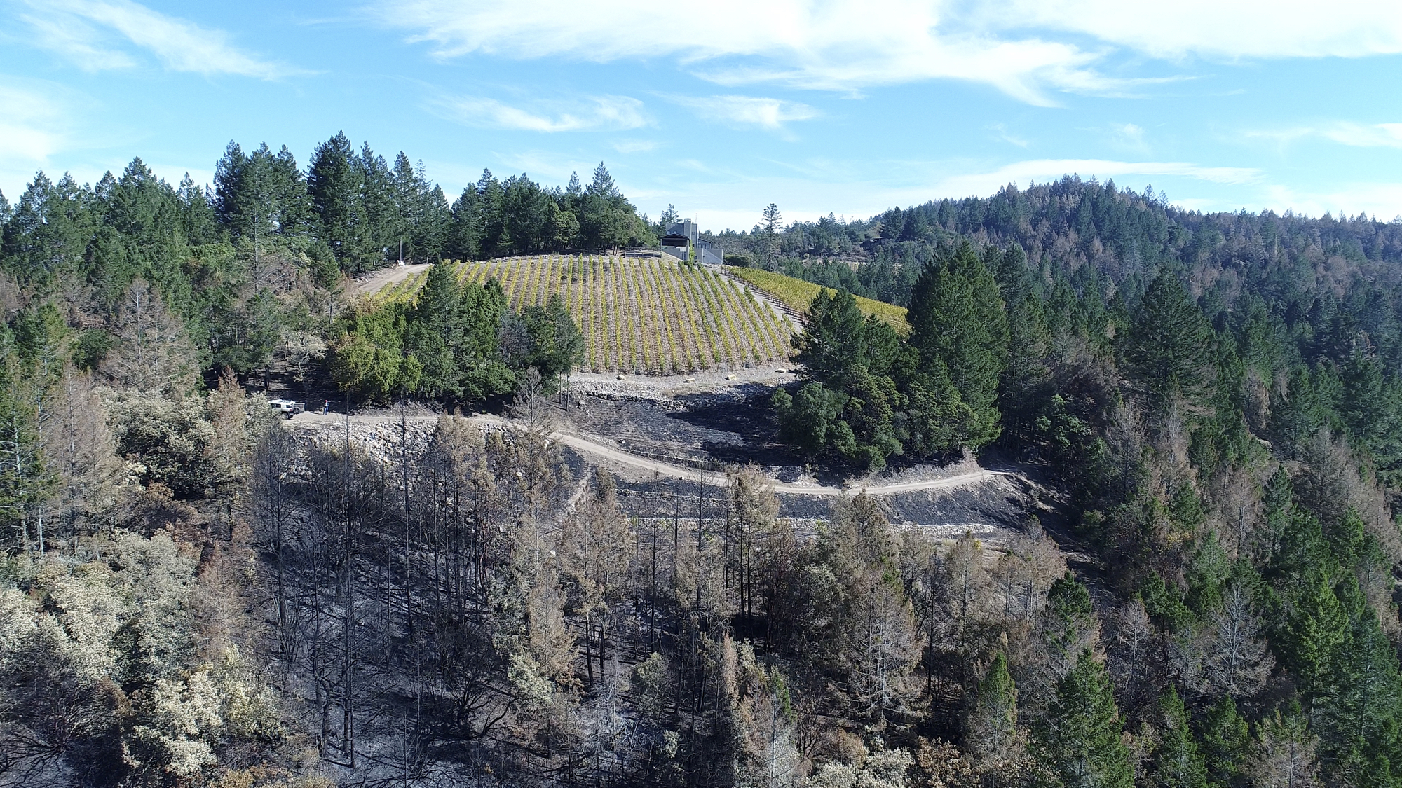 Originally hired in March of 2017 by a Napa engineering company charged with developing this 280 acre Mayacamas Mountain property into a vineyard, I mapped the property into a 3D model and provided high-resolution ortho-mosaics using some 2300 aerial images captured over a 2 day period. The land was rugged, with elevation differentials of more than 1000' from top to bottom, and much of it impossible to access, but after several careful days of planning and inspection and 16 flights from varying elevations, the job was complete. Unfortunately, 6 months later, 80% of this beautiful property was consumed in the devastating Nunn's Canyon wildfire of 2017. I returned on October 28th, less than 2 weeks after the fire and began to "fly" the property again, this time under considerably harsher conditions. Spot fires were still burning and the ash on the ground and in the trees so heavy that I was forced to wear a respirator and protective clothing as I captured the images below.
